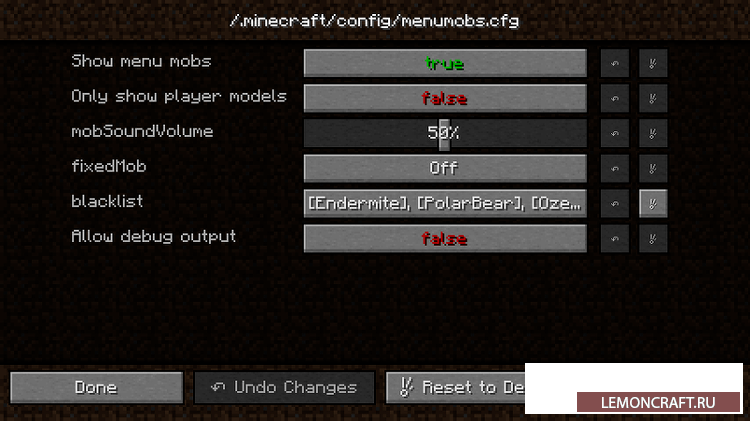 Простенький декоративный мод MenuMobs, который позволяет добавить в меню случайного мода из игры или вас. Эти персонажи будут контролировать курсор мыши и сообщать об изменениях звуковыми сигналами. Моба можно выбрать по вашему усмотрению.